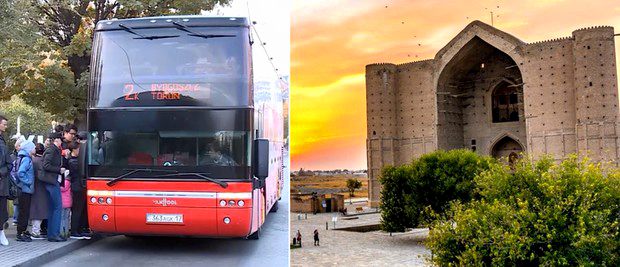 Айта кетейік, автобус Шымкент қаласынан әр сенбі-жексенбі күндері сағат 09:00-де «Shymkent Grand Hotel» қонақ үйінің автотұрағынан қатынайды. Автобустан орынды алдын ала https://goturkistan.com/shymkentturkistan сайты арқылы брондауға болады.