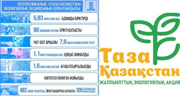 Акция еліміздің барлық өңірін қамтып, тұрақты экологиялық болашақ негізін қалады, 5,83 млн-нан астам адамның басын біріктірді, бұл – ел халқының едәуір бөлігін құрайды.
