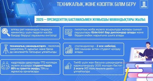 Мемлекет басшысының Жарлығымен 2025 жыл Жұмысшы мамандықтары жылы болып жарияланды. Бастамаларды іске асыру шеңберінде орта білім беру ұйымдарында алғаш рет кәсіп таңдауда және мектеп, колледж және жұмыс беруші арасындағы өзара іс-қимылды жолға қоюда оқушыларды жүйелі сүйемелдеу үшін педагог-кәсіптік бағдар беруші лауазымы ресми түрде енгізілді.