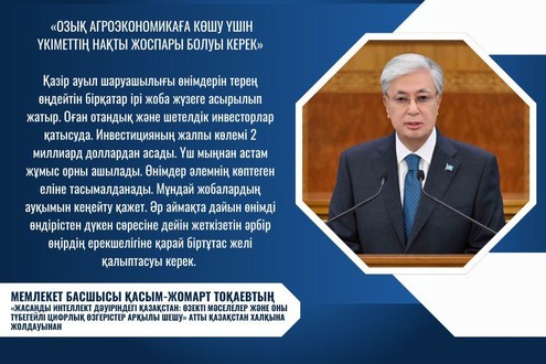 Мемлекет Басшысы Қасым-Жомарт Тоқаев: «Озық агроэкономикаға көшу үшін үкіметтің нақты жоспары болуы керек»