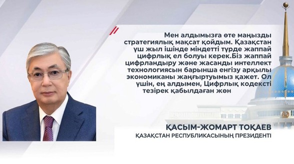 Сондықтан мен алдымызға өте маңызды стратегиялық мақсат қойдым. Қазақстан үш жыл ішінде міндетті түрде жаппай цифрлық ел болуы керек».