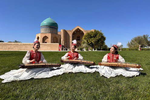 Бүгін халықаралық туризм күні! Мереке қарсаңында Қожа Ахмет Ясауи кесенесінің алдында 100 жетігенші өнерін көрсетіп, көпшілікті таңғалдырды. Олар келуші қонақтар мен зиярат етуші алаңда жетігеннің үнін көпшілікке тыңдатты.
