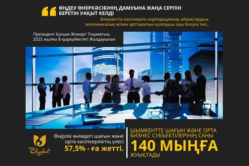 Президент Қасым-Жомарт Тоқаевтың 2025 жылғы 8 қыркүйектегі Жолдауына сәйкес, әлеуметтік-кәсіпкерлік корпорациялар аймақтардың экономикалық өсімін қамтамасыз ететін қозғаушы күш болуға тиіс. Өңірлік өнімдегі шағын және орта кәсіпкерліктің үлесі 57,5%-ға жеткені аймақ экономикасының тұрақты дамуының маңызды көрсеткіші болып табылады.