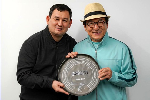 «Бала кезімнің кумирі Джеки Чанмен бірге түсетініме өте қуаныштымын», — дейді Рүстем Омаров.