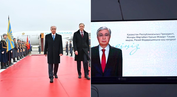 — Приветствуем в Российской Федерации Его Превосходительство Президента Республики Казахстан господина Касым-Жомарта Токаева! — написано на двух языках на больших билбордах и светодиодных экранах, размещенных на улицах Москвы.