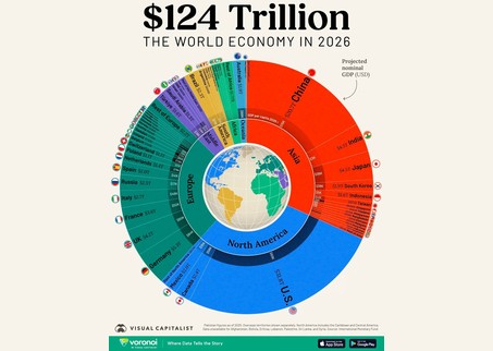 Расстановка лидеров остаётся прежней: США — с прогнозируемым ВВП в $31,8 трлн (по-прежнему крупнейшая экономика мира), Китай — $20,7 трлн, Германия — $5,3 трлн, Индия — $4,5 трлн (удерживает место, обогнав Японию ещё в 2025 году).