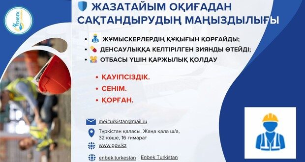 Осы орайда, Сіздерді жазатайым оқиғалардан сақтандыру шартын жасасуға шақырамыз! Себебі, 2026 жылдың бірінші тоқсанында аталған сақтандыру шартын жасамаған кәсіпорындарға тексеру жүргізу жоспарлануда.