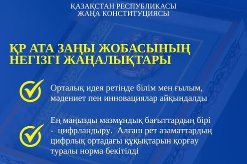 Жаңа Конституция жобасында білім мен ғылым, мәдениет пен инновациялар мемлекеттің негізгі басымдықтары ретінде айқындалды. Бұл бағыттар адами капиталды дамытуға және елдің зияткерлік әлеуетін нығайтуға негіз болады.