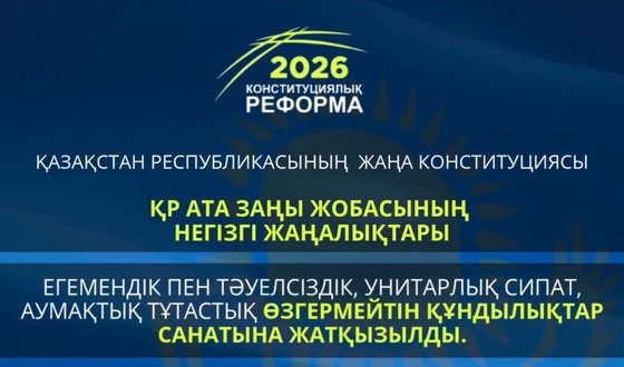 Қазақстан Республикасында 2026 жылға жоспарланған конституциялық реформа аясында Ата Заңның жаңа жобасы әзірленді. Бұл жоба елдің саяси-құқықтық жүйесін одан әрі нығайтуға, мемлекеттің іргелі қағидаттарын сақтауға және қоғамның тұрақты дамуын қамтамасыз етуге бағытталған.