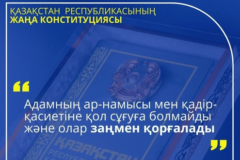 Жаңа Конституция жобасында адам ар-намысы мен қадір-қасиеті ең жоғары құндылық ретінде айқындалған. 20-баптың 1-тармағында адамның ар-намысы мен қадір-қасиетіне қол сұғуға болмайтыны және олардың заңмен қорғалатыны нақты бекітілген. Бұл норма әрбір азаматтың жеке абыройы мен тұлғалық тұтастығын мемлекет деңгейінде қорғауға бағытталған.