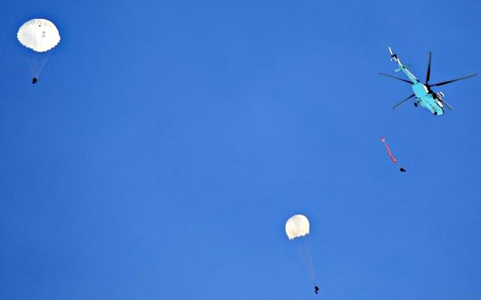 Секірулер Ми-17 тікұшағынан 800 метр биіктіктен Д-6 4-сериялы оқу-жаттығуға арналған парашют жүйелерімен жүзеге асырылды.
