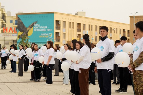 Муралдың ашылуына орай жастар өкілдерінің қатысуымен арнайы флешмоб ұйымдастырылды. Іс-шара барысында қатысушылар Конституциялық реформаны қолдайтын ұрандар айтып, көк аспанға референдум тақырыбындағы әуе шарларын ұшырды. Бұл символикалық әрекет – елдің жарқын болашағына деген сенім мен ортақ жауапкершіліктің белгісі болды.