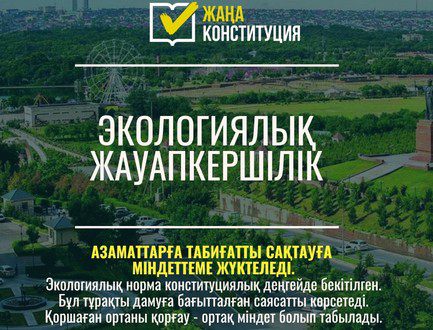 Жаңа Конституция азаматтарға табиғатты қорғау міндетін жүктейді. Экологиялық нормалар енді конституциялық деңгейде бекітілген, яғни бұл – тек үкіметтің ғана емес, әрбір адамның міндеті.
