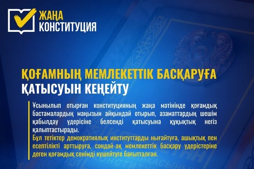 Жаңартылған Негізгі заң азаматтардың қоғамдық өмірге белсенді араласуына, түрлі бастамалар арқылы өз пікірін білдіруіне мүмкіндік береді. Мұндай тетіктер халықтың мемлекеттік басқару ісіне қатысуын кеңейтіп, қоғамдағы азаматтық белсенділікті арттыруға ықпал етеді.