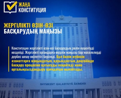 Жаңа Конституция жобасында жергілікті өзін-өзі басқару институтын дамытуға ерекше назар аударылған. Құжатта бұл жүйенің рөлін күшейту арқылы өңірлердегі басқару тиімділігін арттыру және азаматтардың қоғамдық өмірге белсенді қатысуына жағдай жасау көзделеді.