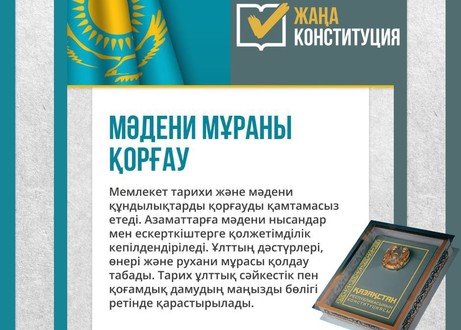 Қазақстан Республикасының Конституциясы тарихи және мәдени құндылықтарды қорғауды мемлекеттің маңызды міндеттерінің бірі ретінде айқындайды. Ұлттың өткенін, рухани байлығын және дәстүрін сақтау – болашақ ұрпаққа аманат.