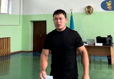Туркестан: В Шардаре 12-кратный чемпион мира по армрестлингу нурдаулет айдархан проголосовал на референдуме