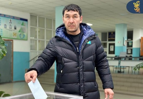 Чемпион мира по самбо среди ветеранов МАДИ Набиев, уроженец Толебийского района Туркестанской области, проявил активность в политической кампании и проголосовал одним из первых на участке референдума.