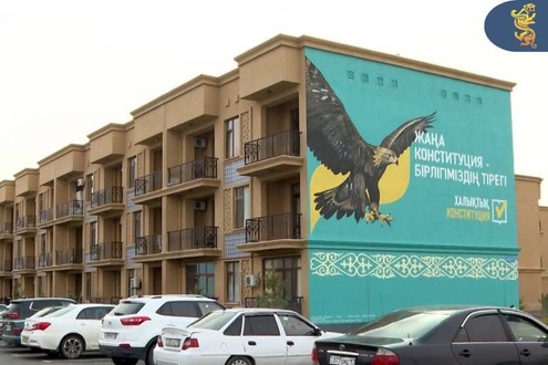 На фасаде жилого дома на территории комплекса Караван-сарай города Туркестан был построен мурал, посвященный Конституции. Это благородное дело, осуществленное в городе Туркестан, направлено на поддержку конституционной реформы. Новый мурал — художественный образ процессов политической модернизации страны, смелых шагов на пути к созданию справедливого общества. В нем сущность конституционной реформы, значение воли и единства народа, идеи верховенства закона и гражданской ответственности раскрываются современными художественными подходами.