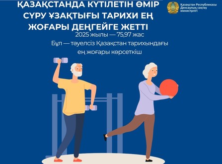 Қазақстан Үкіметі 2029 жылға дейінгі денсаулық сақтауды дамыту тұжырымдамасы шеңберінде елдегі күтілетін өмір сүру ұзақтығын 77 жасқа дейін жеткізу жөнінде өршіл мақсат қойып отыр.