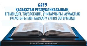 «Әр адам Қазақстан Республикасының Конституциясы мен заңнамасын сақтауға, басқа адамдардың құқықтарын, бостандықтарын, ар-намысы мен қадір-қасиетін құрметтеуге міндетті». Бұл – әрқайсымызға жүктелген ортақ жауапкершілік. Қазақстан Республикасы Конституциясы – ел бірлігінің, тұрақтылық пен әділеттіліктің кепілі. Ол азаматтардың құқықтары мен бостандықтарын қорғап қана қоймай, қоғамдағы өзара сыйластық пен заң үстемдігін қамтамасыз етеді. Жаңа Конституциялық өзгерістер – жаңару мен даму жолындағы маңызды қадам. Әділдікке ...