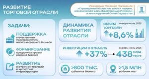 В рамках реализации Послания Президента Касым-Жомарта Токаева «Справедливый Казахстан: закон и порядок, экономический рост, общественный оптимизм» и иных поручений Главы государства Правительством ведется работа по развитию торговли и расширению экспортного потенциала страны. Для укрепления позиций отечественных производителей, увеличения объемов несырьевого экспорта и поддержки малого и среднего бизнеса Правительством проводится системная работа. Формируются прозрачные правила ведения бизнеса, развивается внутренняя торговля и ...